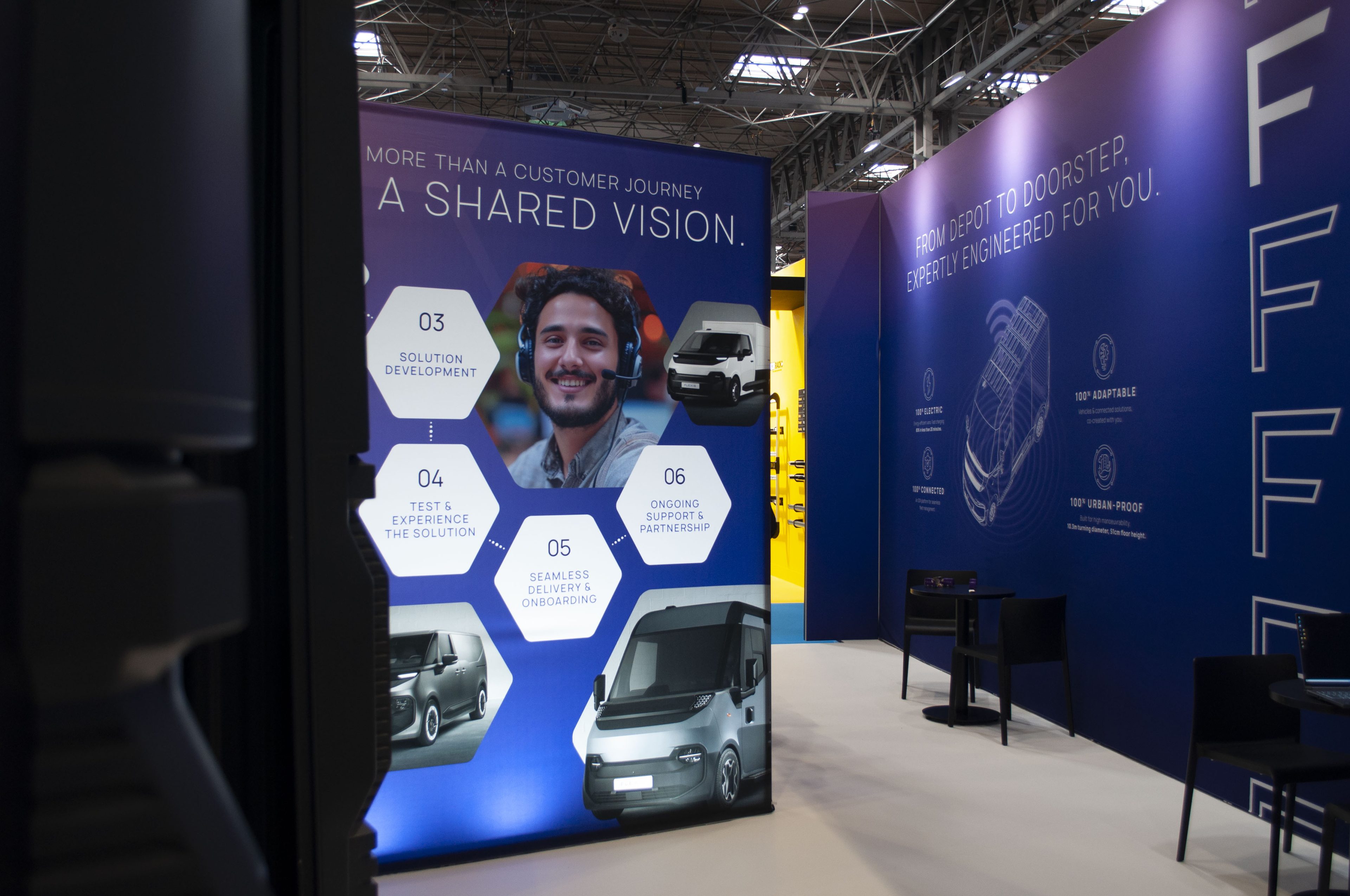 This marked the beginning of a successful partnership focused on creating high-impact visuals for their brand and large-scale events. For various exhibitions in 2025, Flexis wanted to curate vibrant spaces that showcase their complete solutions for professional logistics operators.